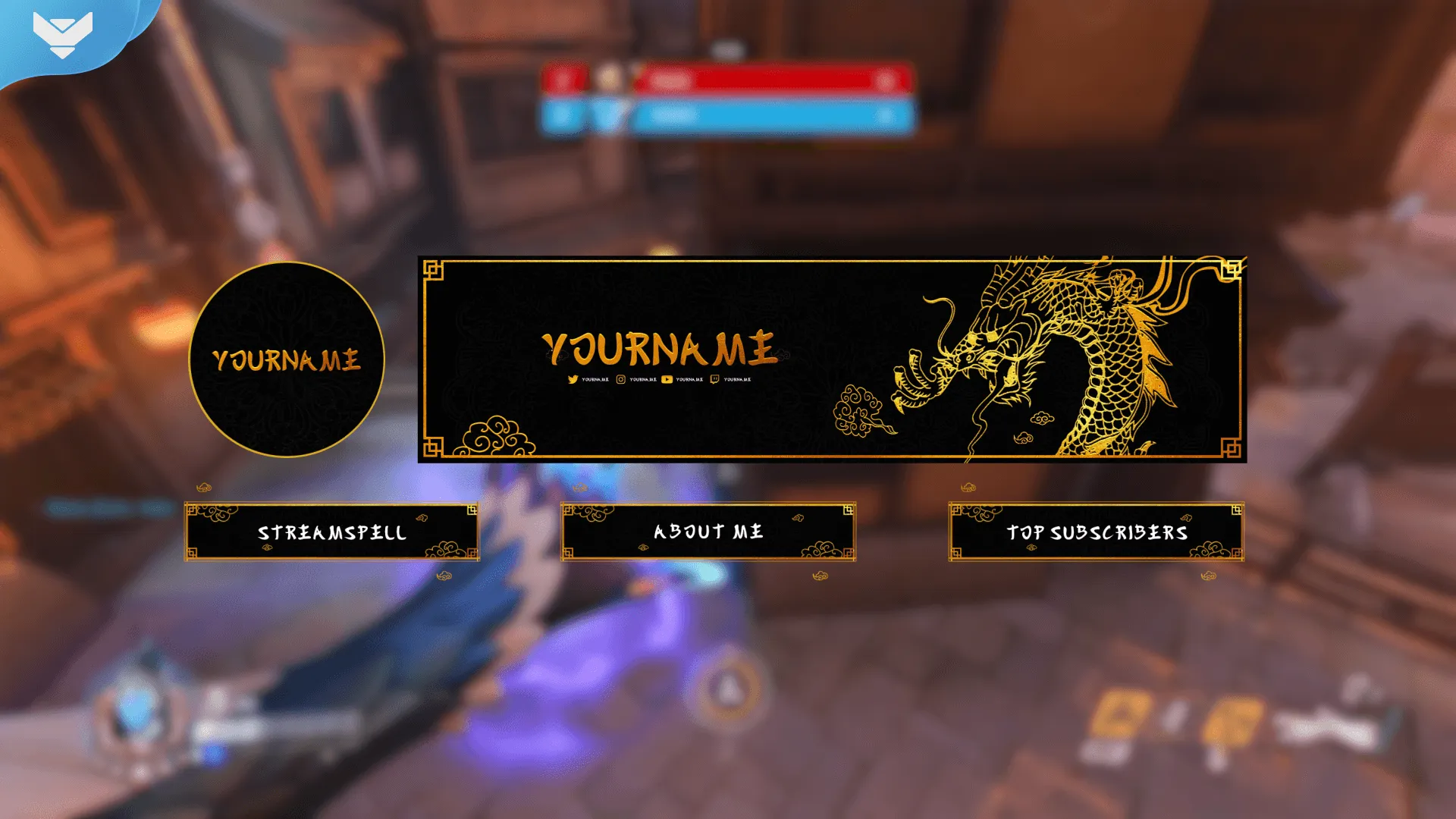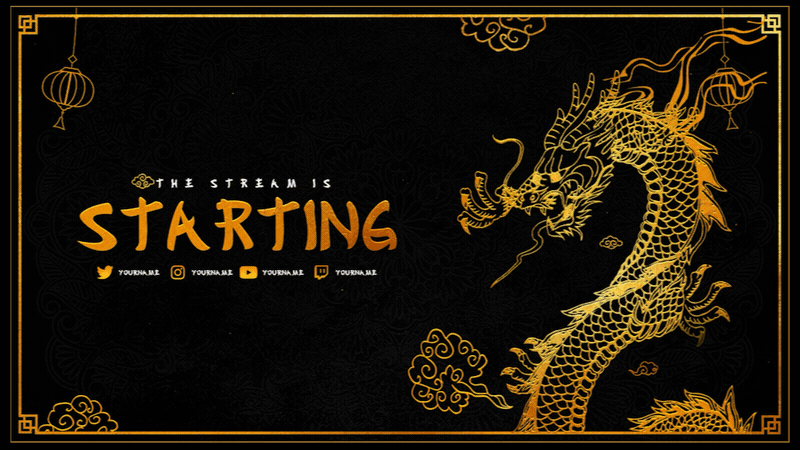 This package features a Chinese dragon spitting fire as paper lanterns fly through the sky, with the perfect contrast of black and gold symbolizing the power and strength that combined with the classic Chinese design brings luck and success to your stream!
