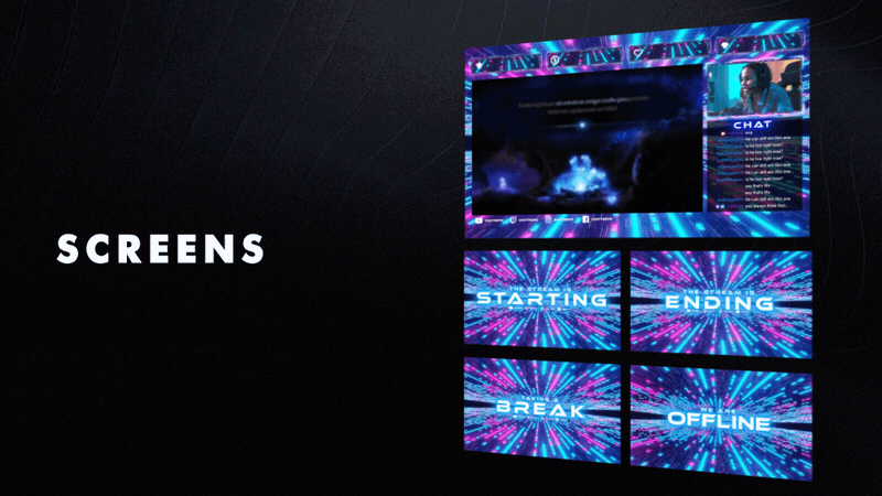 Experience the future with our animated alerts: Futuristic, edgy, and as fast as light itself. While you'll have seamless transitions at light speed! Watch the world of your stream come alive in a burst of vibrant lights.