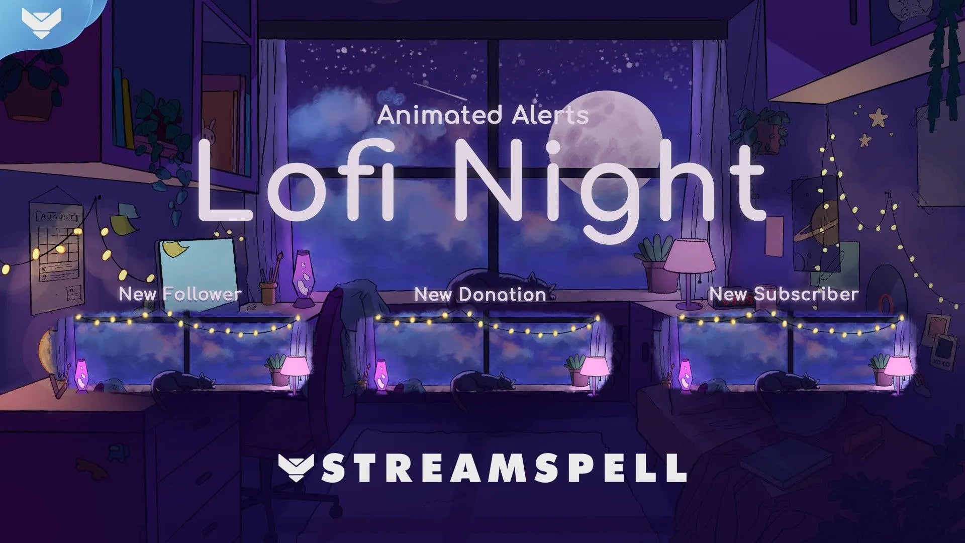 Lofi Night Stream Alerts and Widgets Stream Overlays for OBS, Twitch & YouTube