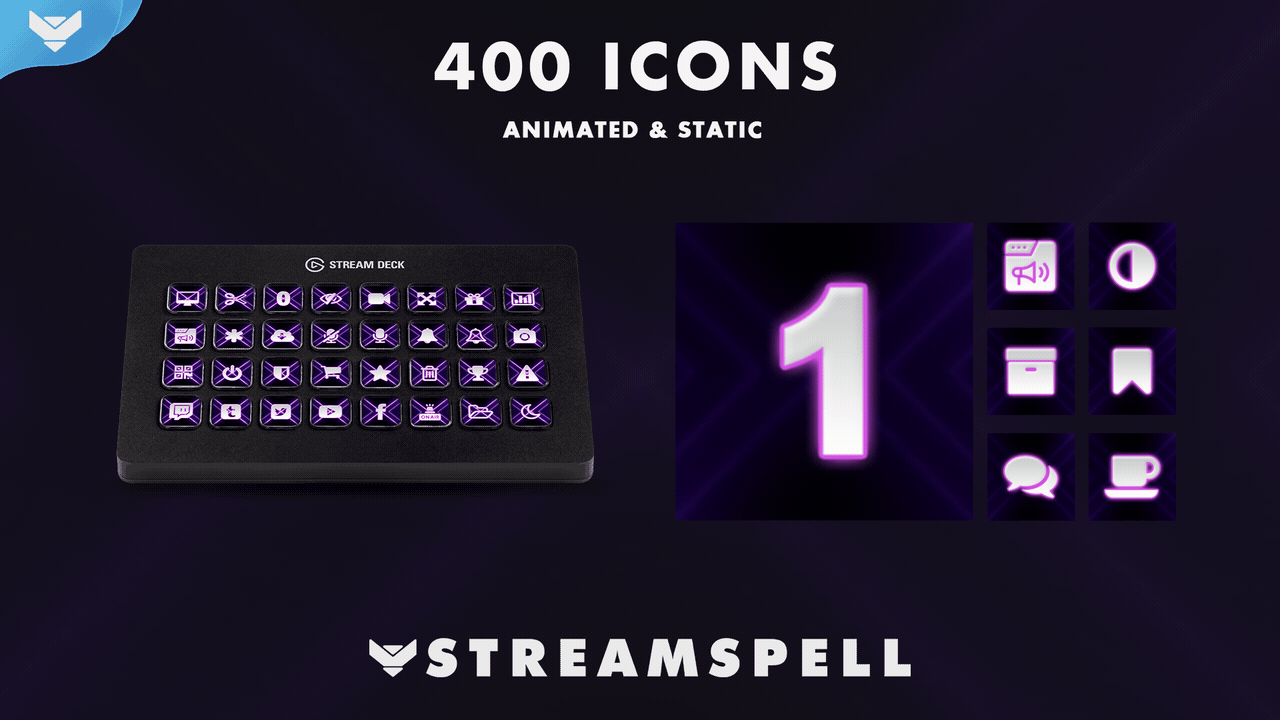 So we were inspired to create this bundle of icons with neon purple lights that are ideal to compose your Stream Deck and match all styles of games and broadcasts.