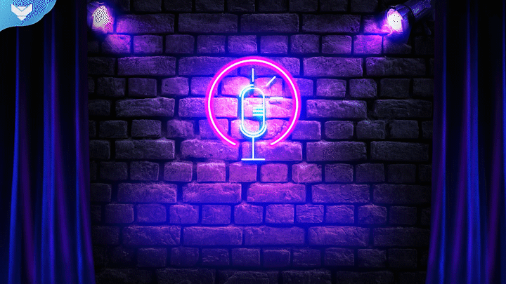 The classical purple look, beautiful curtains and the effective mic are part of this new design, created especially for those who love and focus mainly on podcasts!