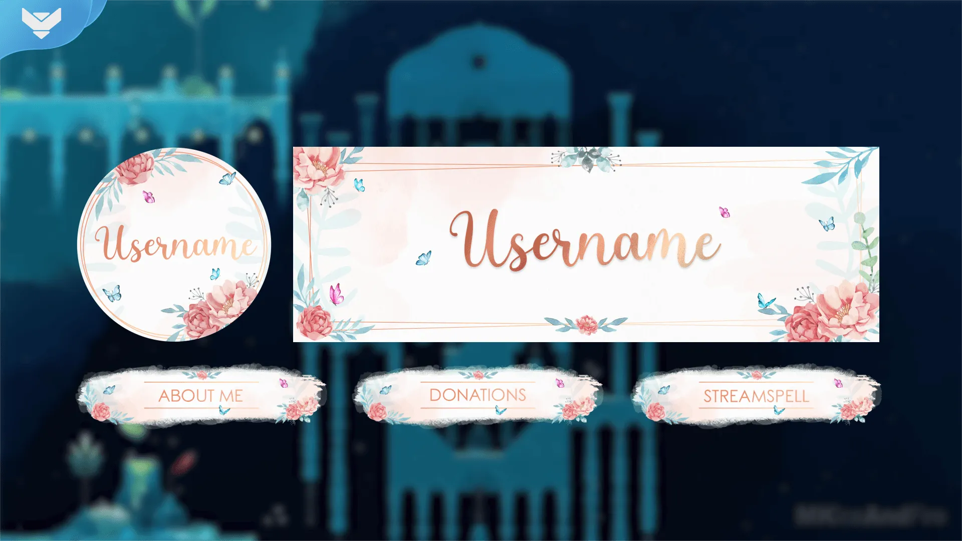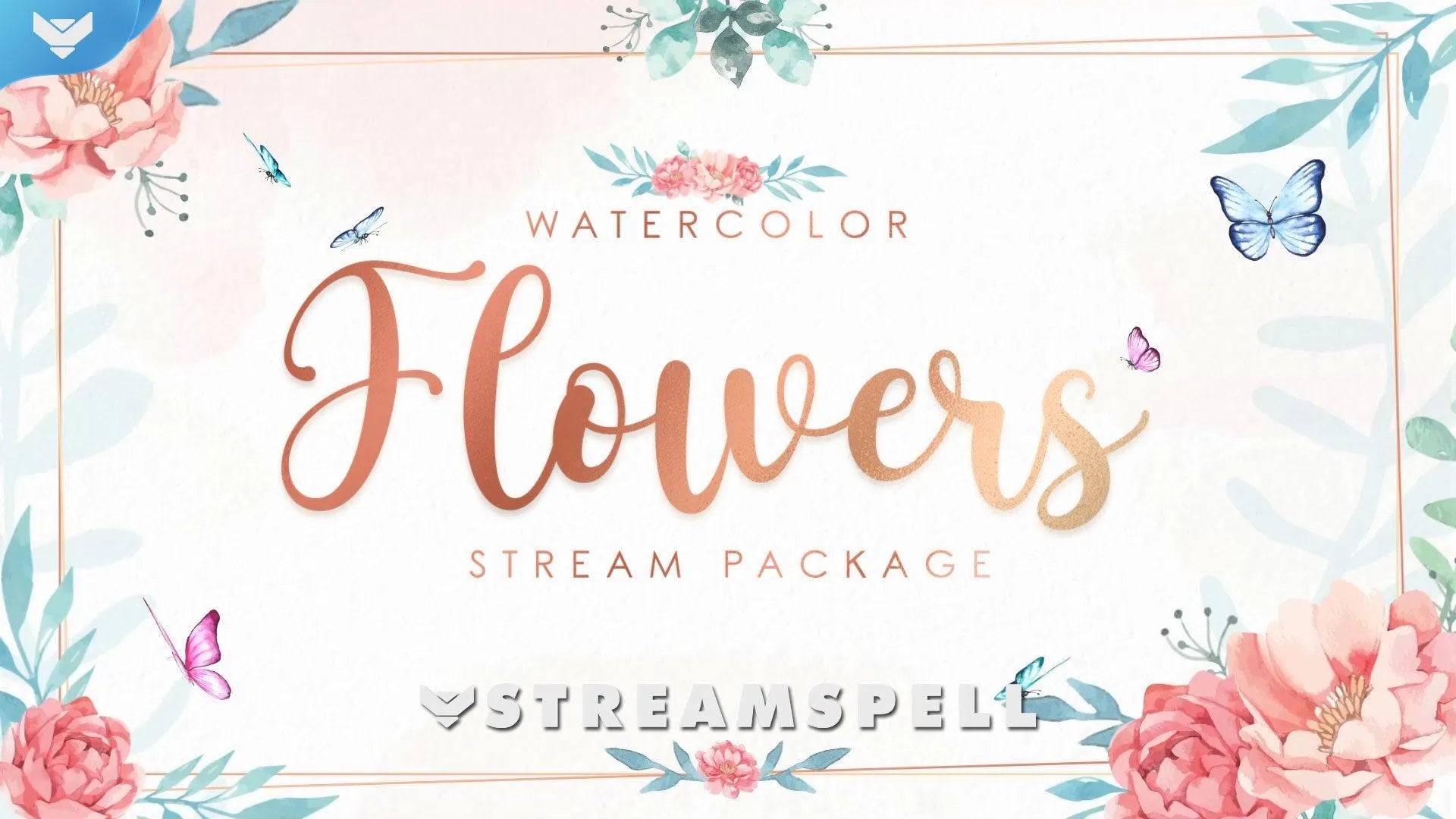 The composition of the flowers will add an essential touch to your stream, with the color mix of blue, pink, green, and the trend of rose gold present in the font!